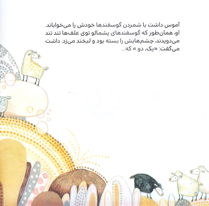 آموس داشت با شمردن گوسفندها خودش را میخواباند. او همانطور که گوسفندهای پشمالو توی علفها تندتند میدویدند، چشمهایش را بسته بود و لبخند میزد. داشت میگفت: «یک، دو» که…