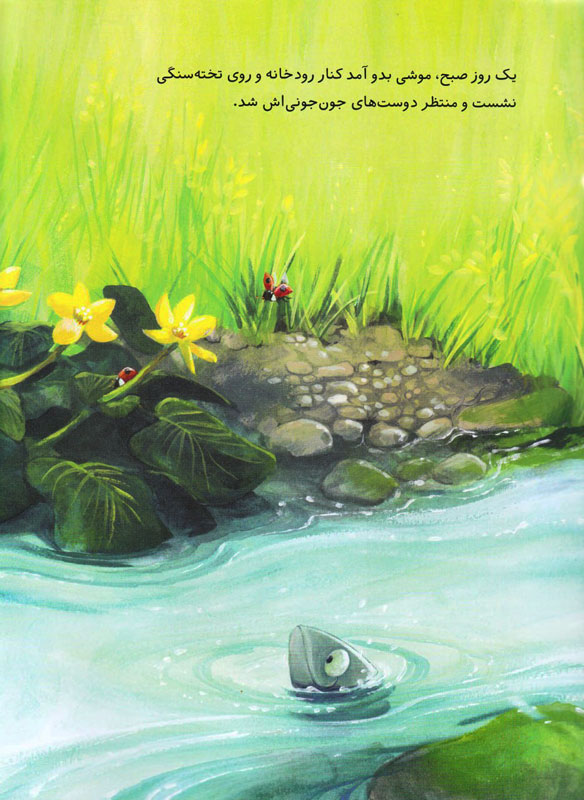 موشی کنار رودخانه منتظر دوست‌های جون‌جونی‌اش است. خرگوش و قورباغه و لاک‌پشت هم سر می‌رسند و با موشی منتظر می‌شوند.
