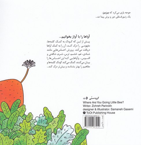 کتاب “زنبوره، کجا؟ کجا؟” بیانی ساده، ریتمی آهنگین و آواهایی تکرارشونده دارد. همین نکته سبب میشود که کودک بهراحتی با متن ارتباط برقرار کند و تا پایان داستان از کتاب چشم برندارد. زیرا پیش از اینکه کودک به کمک کلمهها، مفهومی را دریافت کند، آن را به کمک آواها دریافت میکند. پرورش احساساتی مانند شادی، غم، خشم، ترس… و آواهایی که این احساسات را بیان میکنند، کمک میکند که کودک کلمهها و مفاهیم را بهتر بشناسد و بیشتر درک کنند…